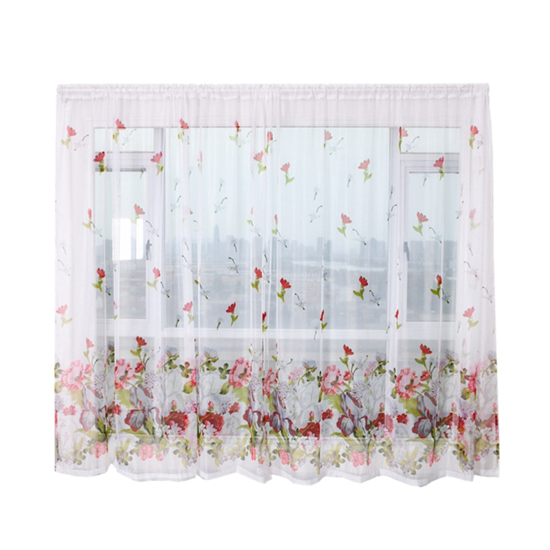 Floral Semi Sheer Curtains Colorful Window Treatments Light Curtains Rod Pocket Drapes for Living Room Bedroom Home Decor