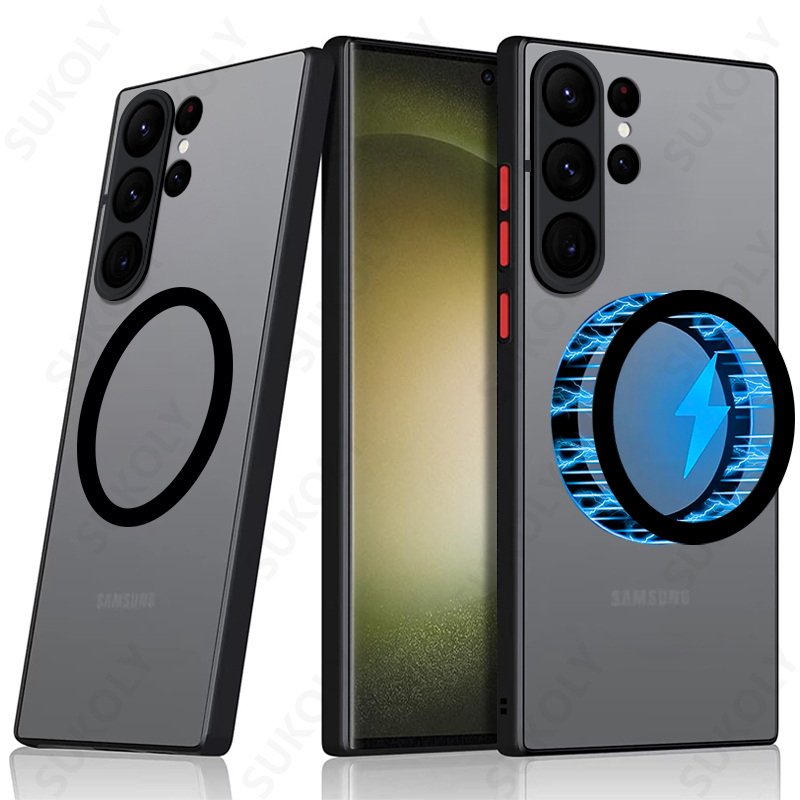 For Samsung Galaxy S23 S24 Ultra S21 S20 FE Frosted Matte Case For Magsafe Wireless Charging Iron Ring Hard Acrylic Phone Cover