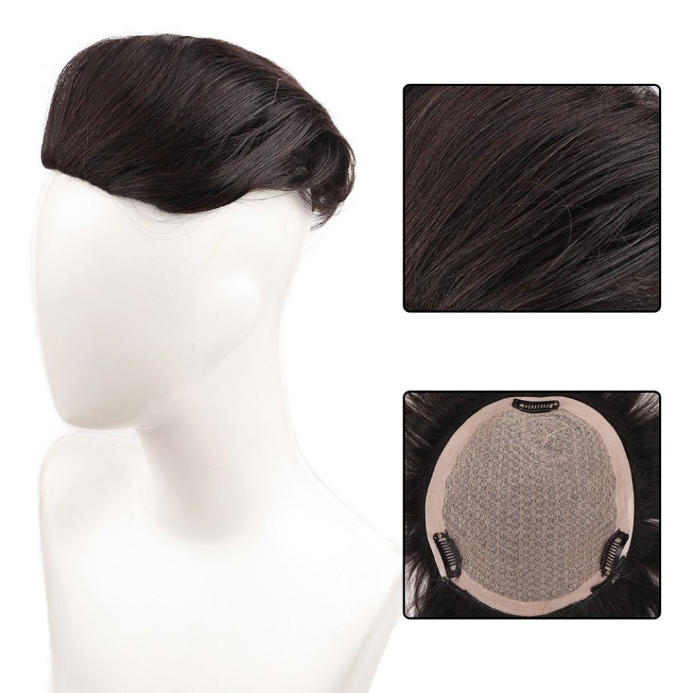 Hair Replacement Male Natural Toupee Nightclub Bar Wig Clip-On Invisible Hairpiece Human Hair Toupee Hair Extensions Breathable Black Short Wig for Young Men