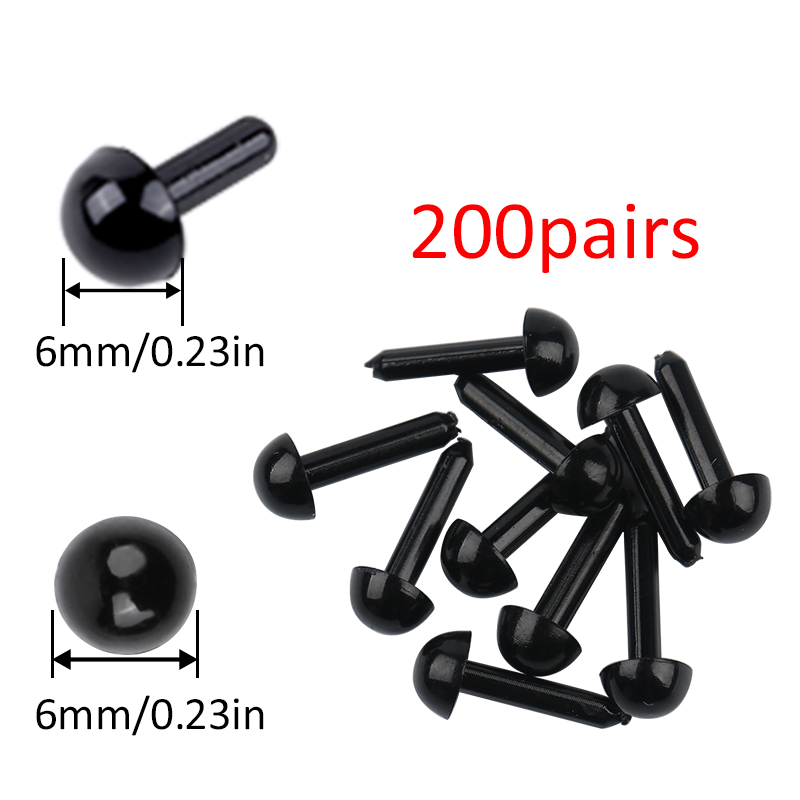 KRABALL 200 Pairs Plastic Eyes 3456 mm Safety Eyes Needle Felting for Teddy Bears Dolls Animals Black Eyes Dolls Accessories