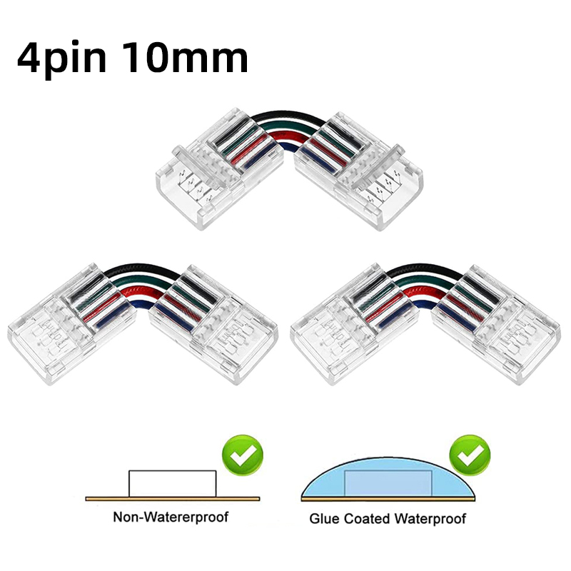 L Shape 4Pin LED Connector 8mm10mm Solderless Adapter Connector Compatible with3528 5050 WaterproofNonwaterproof RGB LED strip