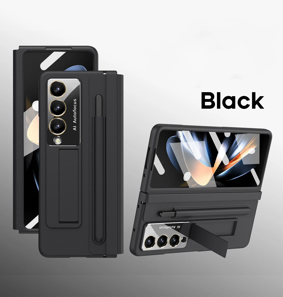 Leather Hinge Case For Samsung Galaxy Z Fold 5 4 3 Phone Case Glass Screen With Pen Slot S Pen Holder Cover For Z Fold5 Fold4
