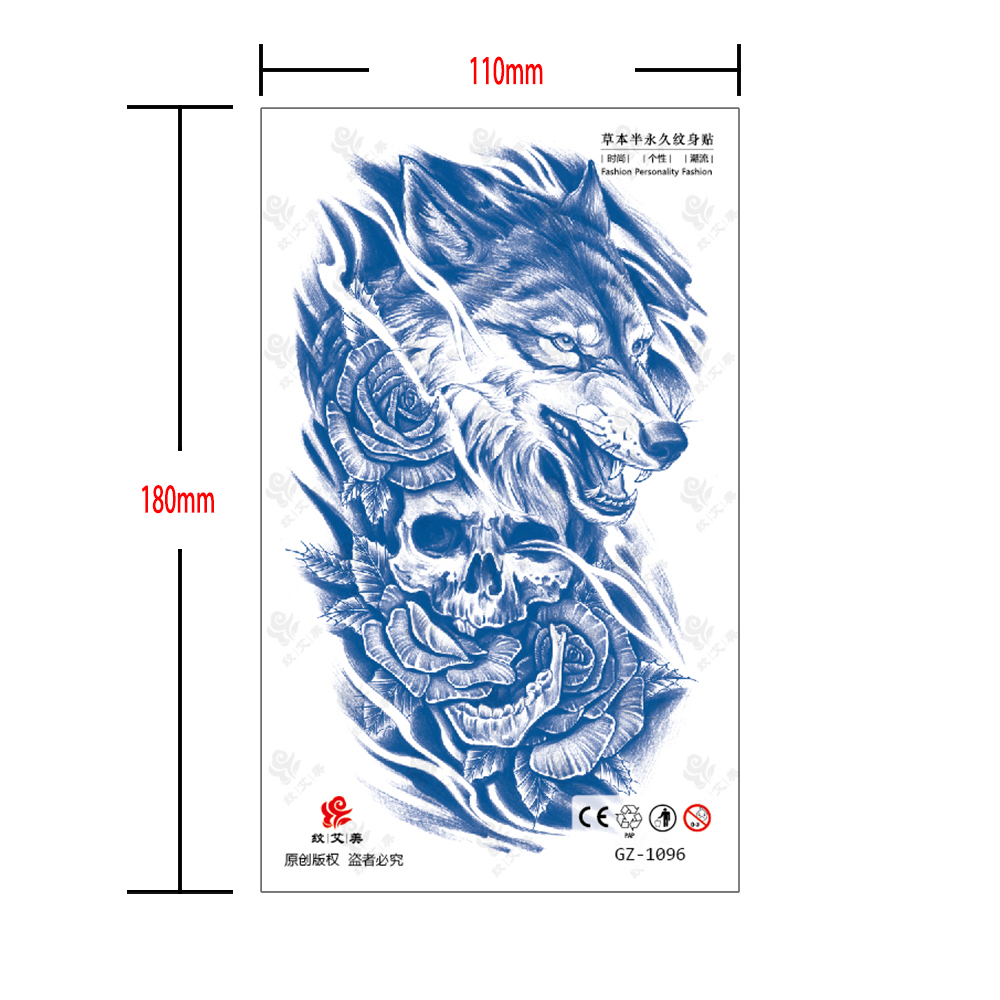 Long Lasting Waterproof Juice Temporary Fake Tattoo StickersBeast Lion Tiger Wolf Skull Cross Angel for Woman Man Cool Body Art