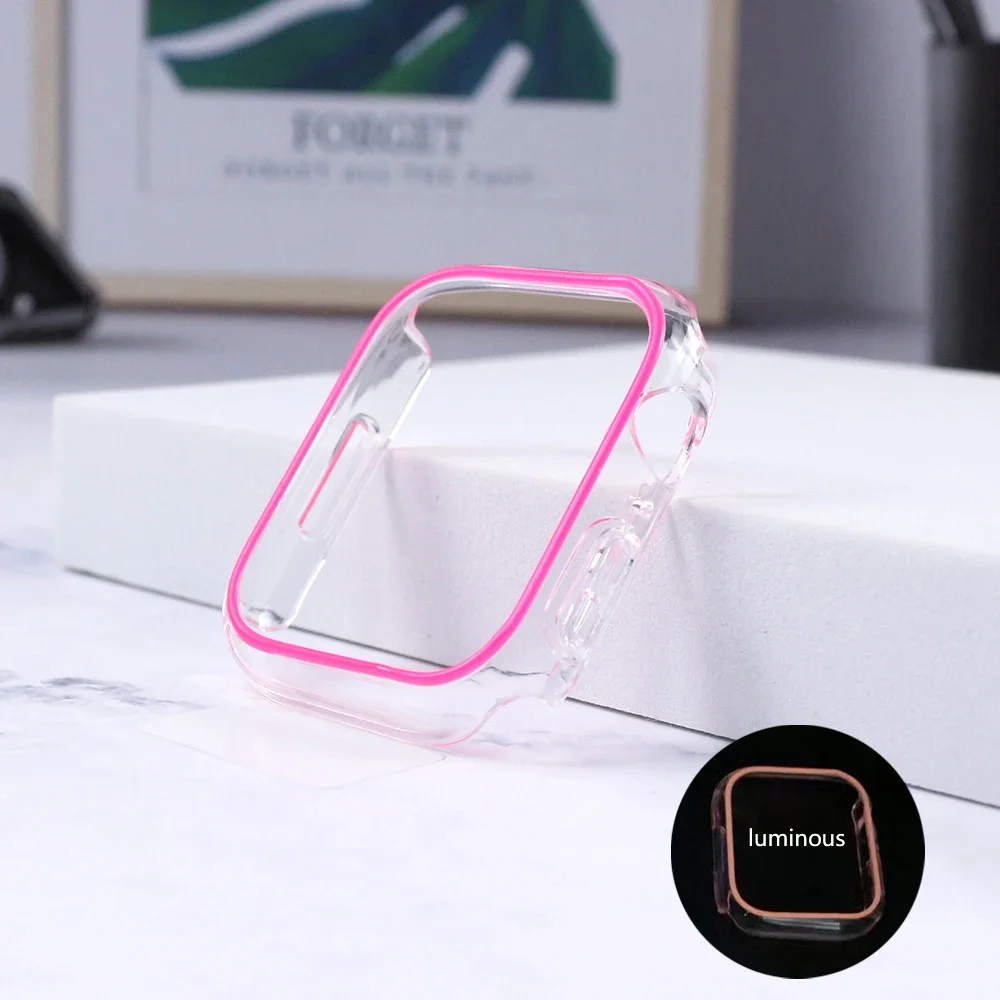 Luminous Cover for Apple Watch Case Ultra 49mm 45mm 44mm 41mm 40mm Hard PC Bumper Protective Frame iWatch 8 7 6 5 SE Accessorie