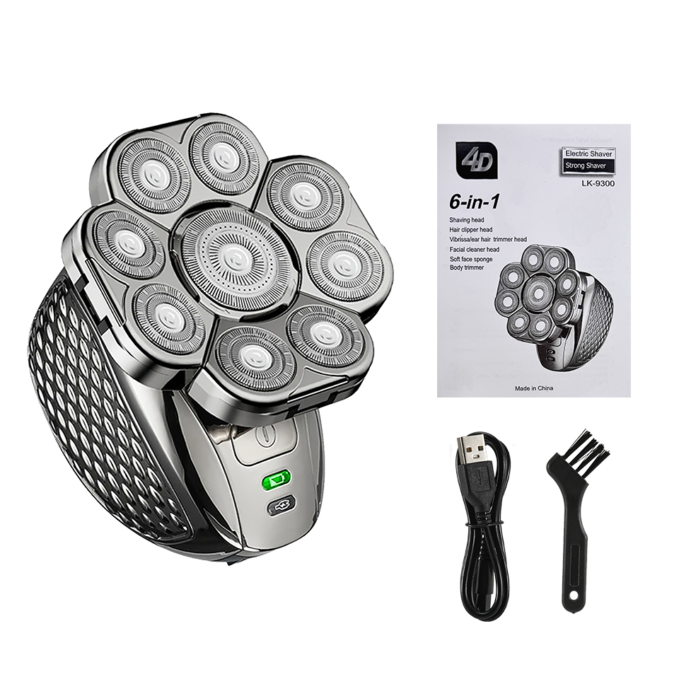 Men Grooming Kit 9 Cutter Floating Head Electric Razor Multifunction Shavers USB Rechargeable Wet/Dry 6 In 1 Bald Head Shavers