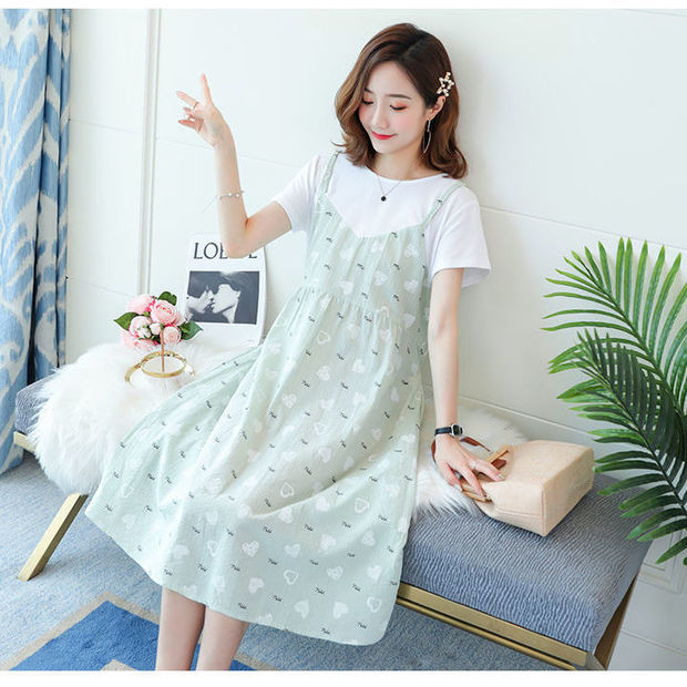 New Maternity Dress Summer ShortSleeved MidLength False TwoPiece Korean Version Of The Female TShirt Summer Maternity Skirt