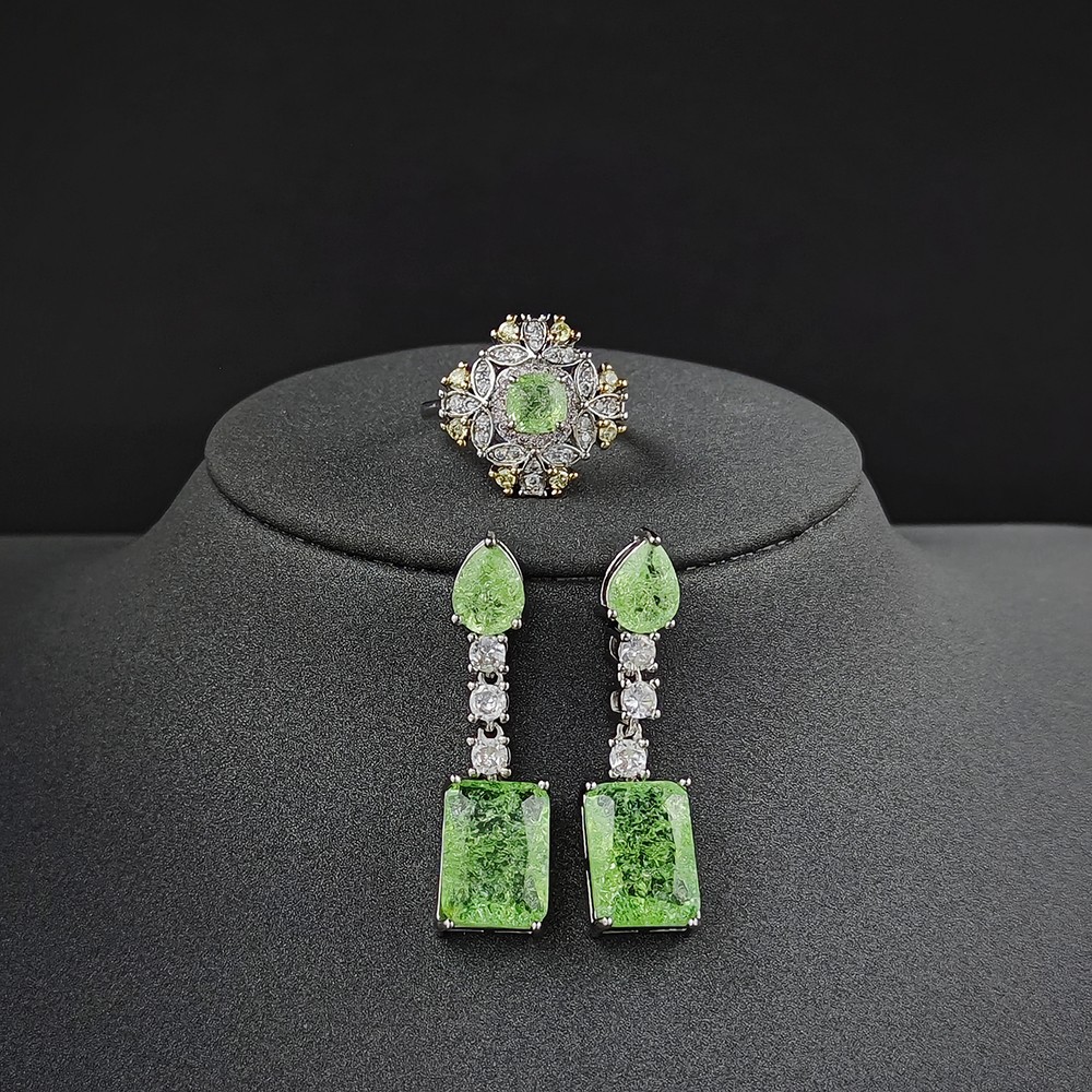 Niche highgrade light luxury design highgrade green set earrings ring twopiece r6260e6580