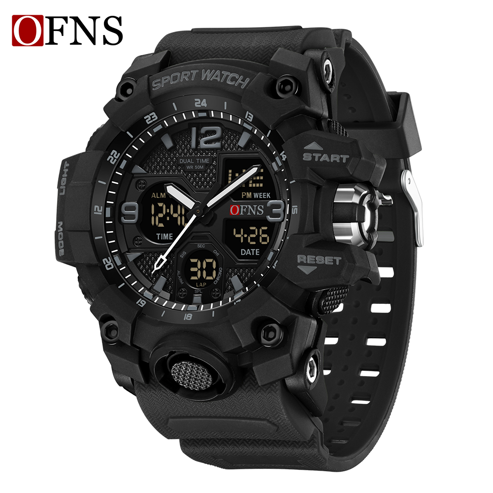 OFNS Top Brand G Style Sports Mens Watches Military Quartz Watch Man Waterproof LED Digital Wristwatch for Men Clock Relogio