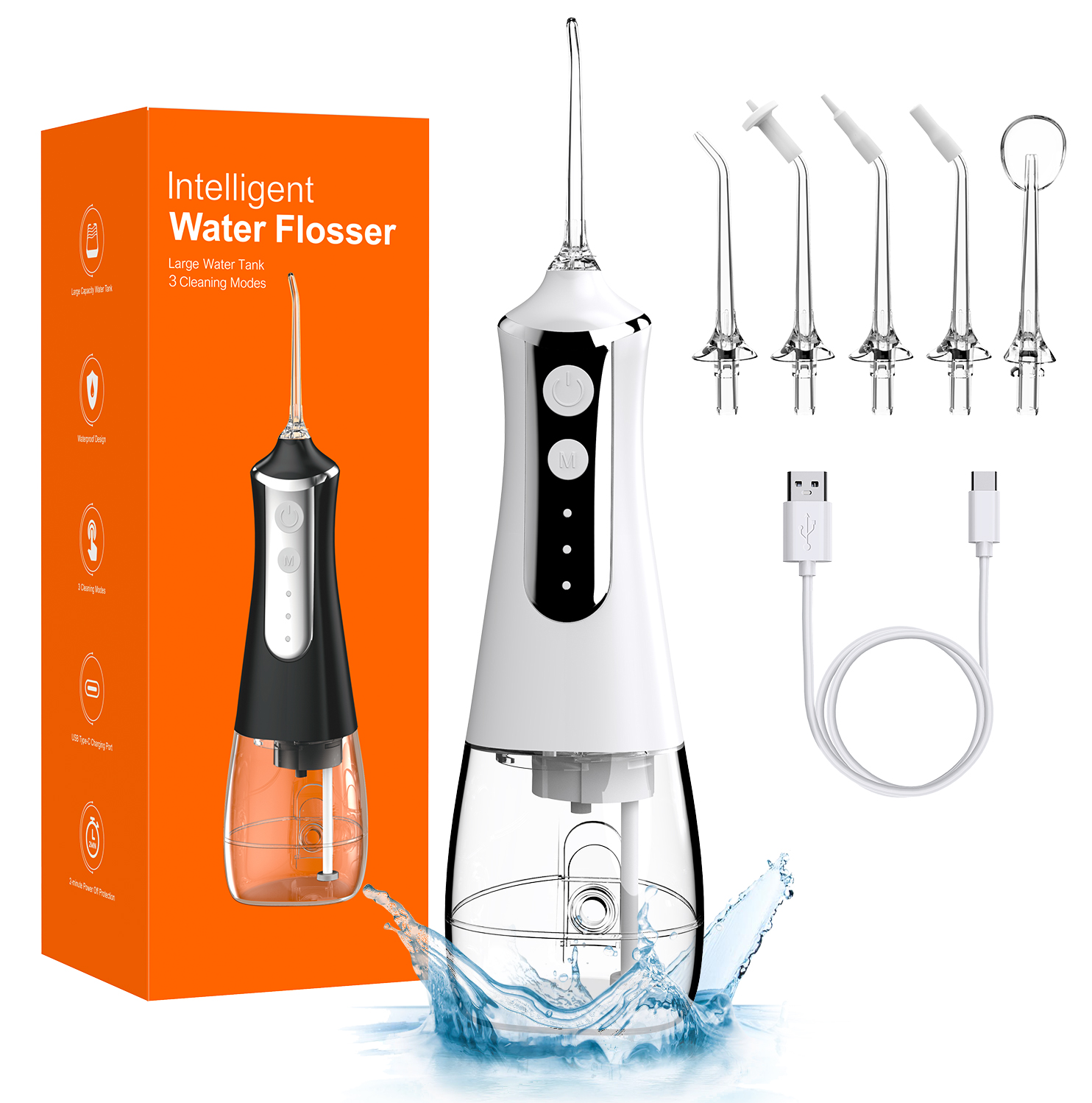 Oral Irrigator Portable Water Flosser Rechargeable 3 Modes 300ML Dental Water Jet for Cleaning Teeth|