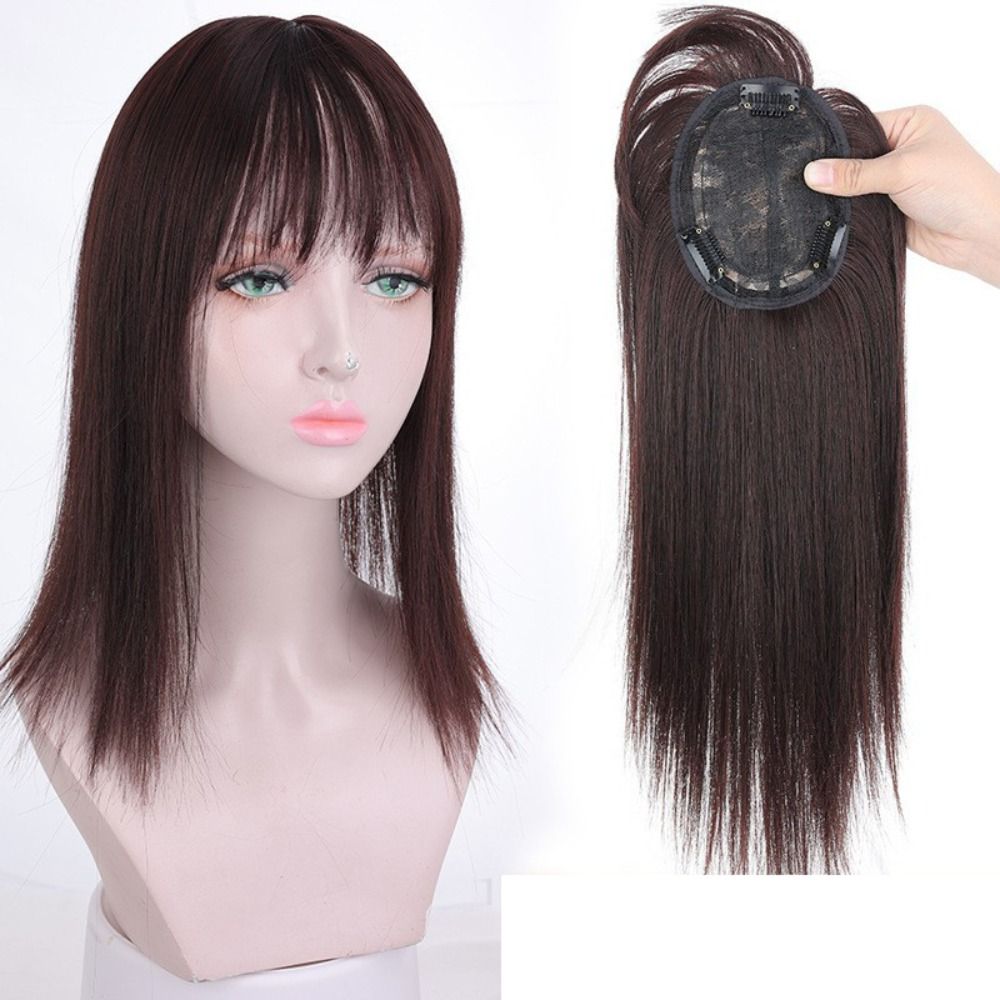 Party High quality Blonde Girls Increase Hair Volume Brown Hair Extensions High Temperature Fiber Female Topper Hair Piece 3D Hair Bangs Long Straight Wig Head Top Wig Block