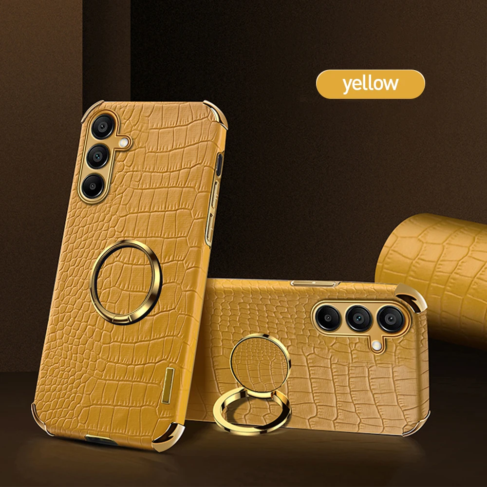 Plating Crocodile Texture Phone Case For Samsung Galaxy A55 A35 A25 A15 A05 A73 A72 A54 A53 A52 4G 5G Magnetic Finger Ring Cover