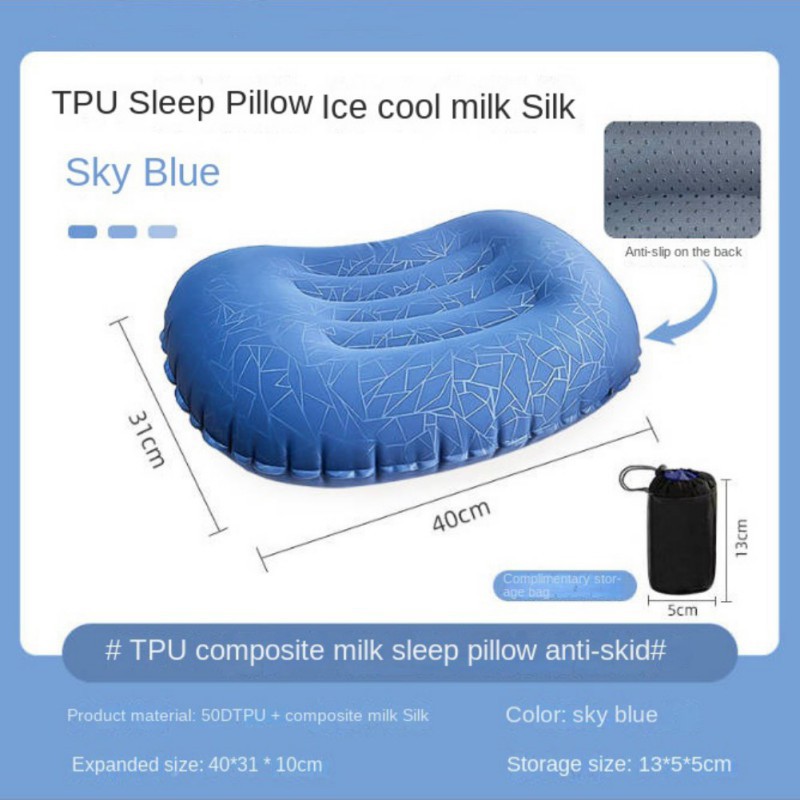 Portable Inflatable Pillow Travel Camping Equipment Compressible Folding Air Cushion Outdoor Protective Tourism Sleeping Gear