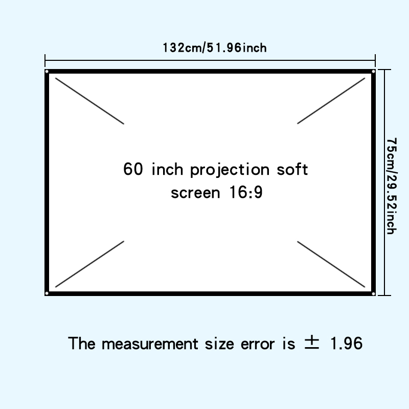 Projection screen folding wrinkle resistant portable HD 16:9 hanging movie home, outdoor, indoor, camping 60-150 inches