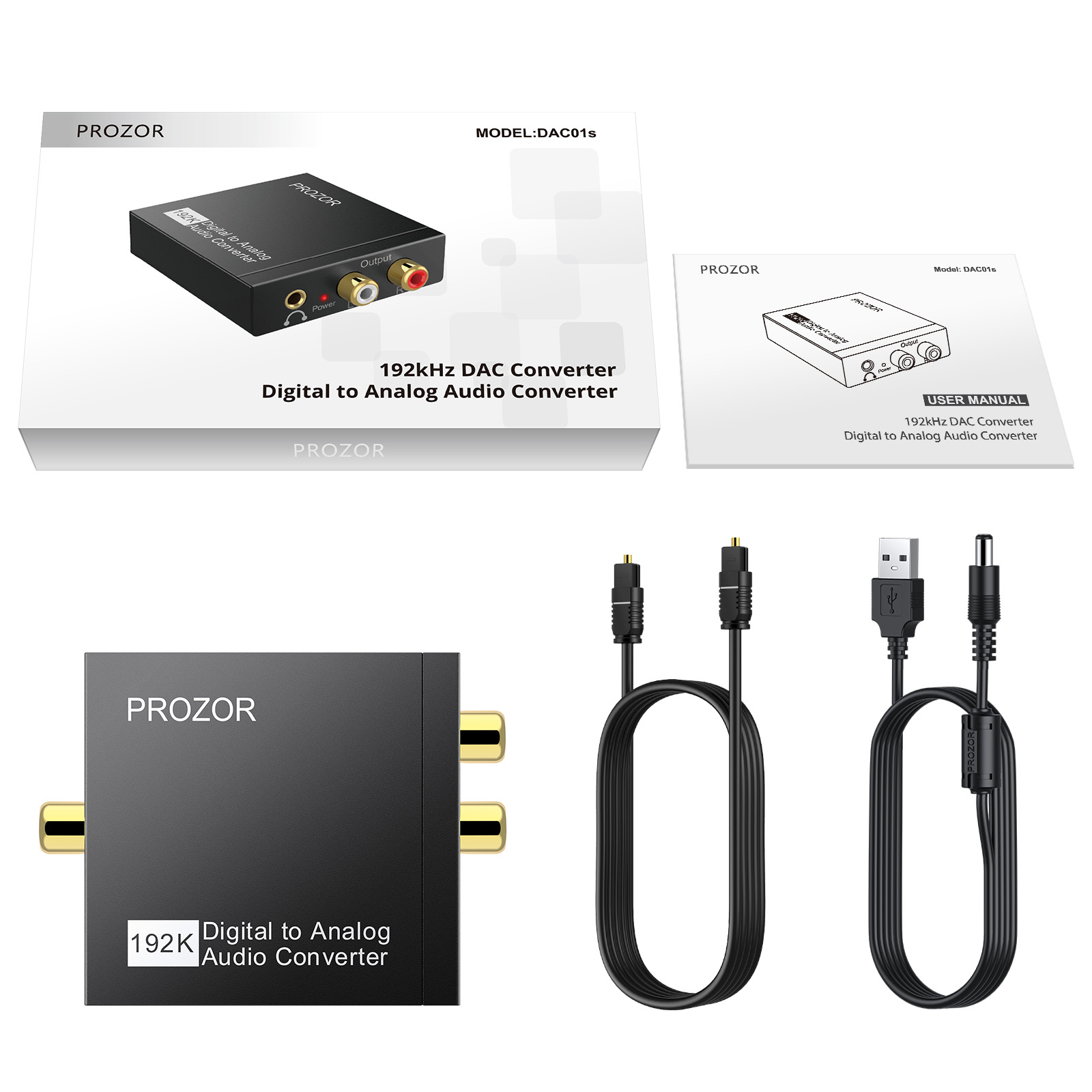 PROZOR DAC Digital to Analog Converter Optical Coaxial Fiber SPDIF to RCA 3.5mm Jack Audio Adapter With Optical Cable Adapter