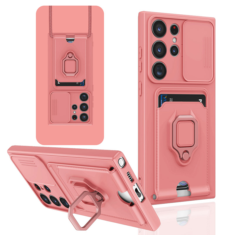 Push Window Ring Holder Card Slot Case For Samsung Galaxy S24 S23 S22 Ultra Plus S20 S21 FE Support Car Bracket Magnetic Cover