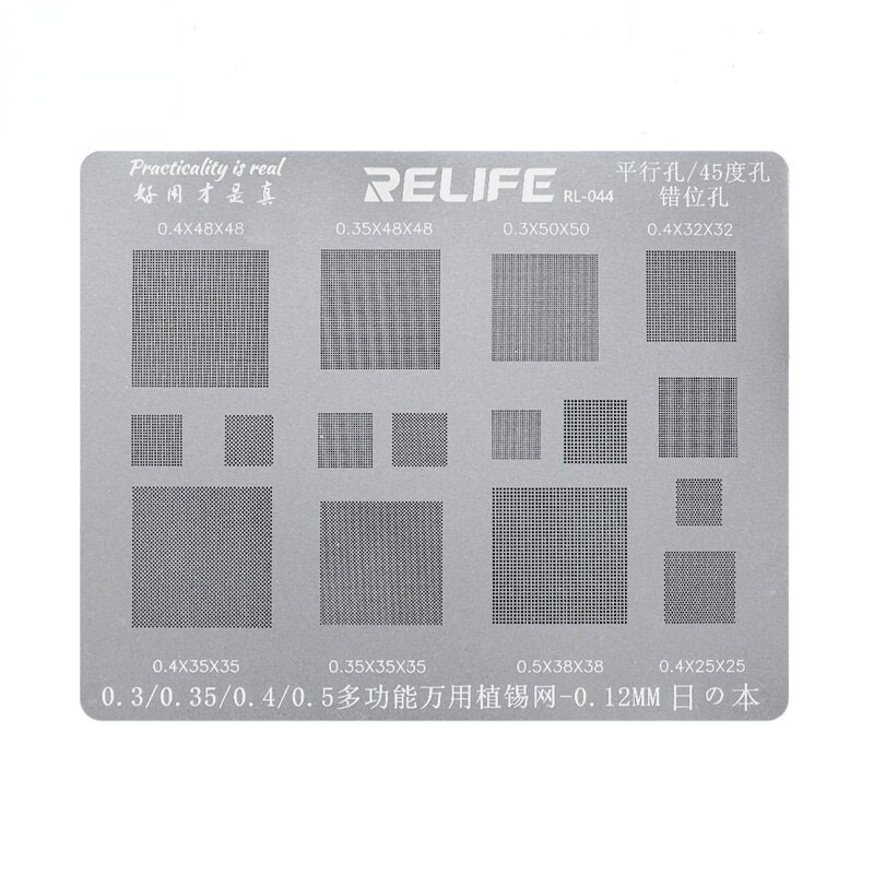 RELIFE Multi-Purpose BGA Stencil for 0.3/0.35/0.4/0.5/Parallel/45 Degree Hole Universal Solder BGA Reballing Stencil Solder Net