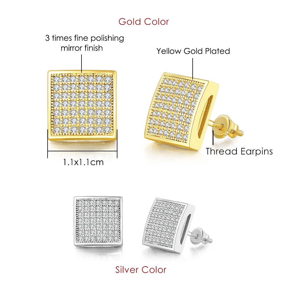 Rock Hip Hop Iced Out Stud Earring for Men Male Inlaid AAACZ Zircon Gold Color Piercing Ear Accessories Hiphop Trend Jewelry