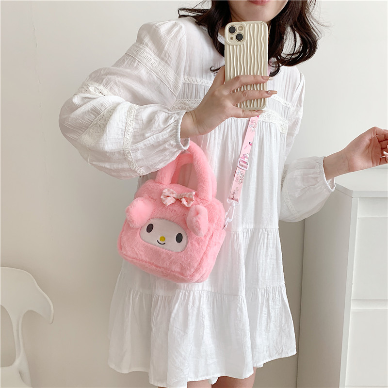 Sanrio Plush Bag Kawaii Kuromi Cinnamoroll Melody Cartoon Anime Handbag Crossbody Cosmetic Travel Storage Bags Women Girls Gifts