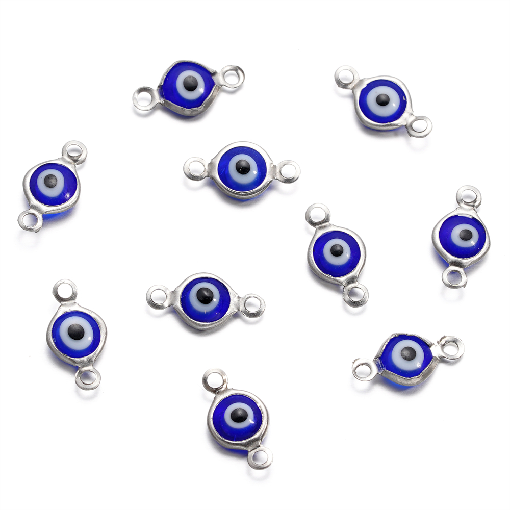 Stkunkka 5pcs10pcs Stainless Steel Color Double Hole Devil Eye Eye Bead Pendant Eye Shape for DIY Jewelry Making Bracelet Necklace