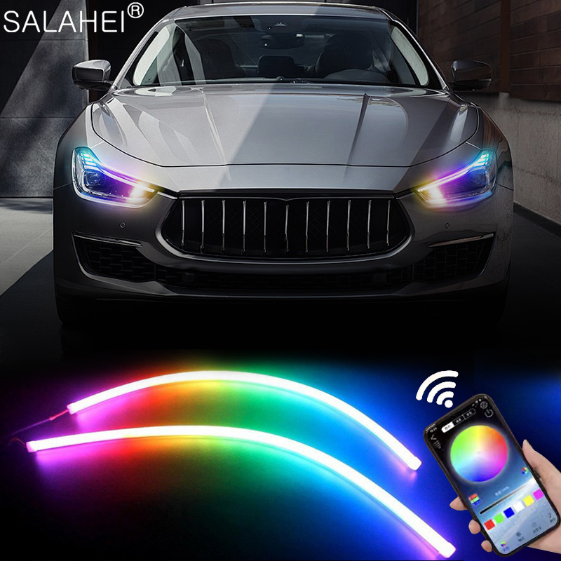 Symphony DRL Car LED Daytime Running Light APP Control Flexible RGB Flowing Turn Signal Strip Headlight Decorative Lamp 12V 24V|