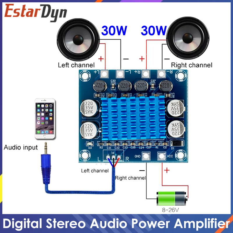 TPA3110 XH-A232 30W+30W 2.0 Channel Digital Stereo Audio Power Amplifier Board DC 8-26V 3A