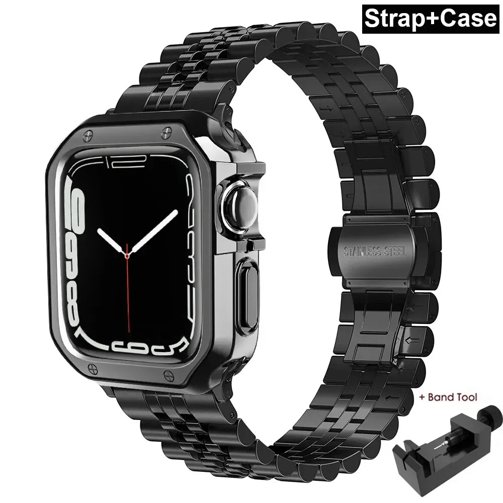 TPU Protector Case+Metal Strap For Apple Watch Ultra Band 49mm 45mm 44mm 41mm 40/38 Stainless steel Bracelet series 3 5 6 se 7 8