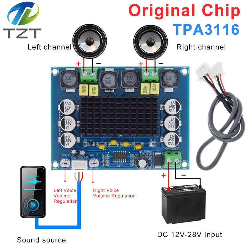 TZT DC 12V 24V 120W*2 TPA3116 D2 Dual Channel digital Power audio amplifier board good