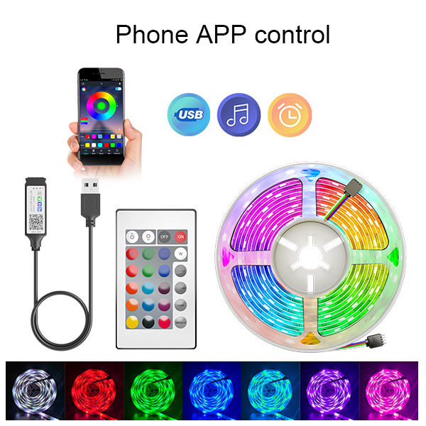 USB LED Strip Light 16LED/Meter Bluetooth RGB Lights Flexible TV Backlight Lamp 5050 5V LED Tape Diode Phone APP 1-30m For Room|