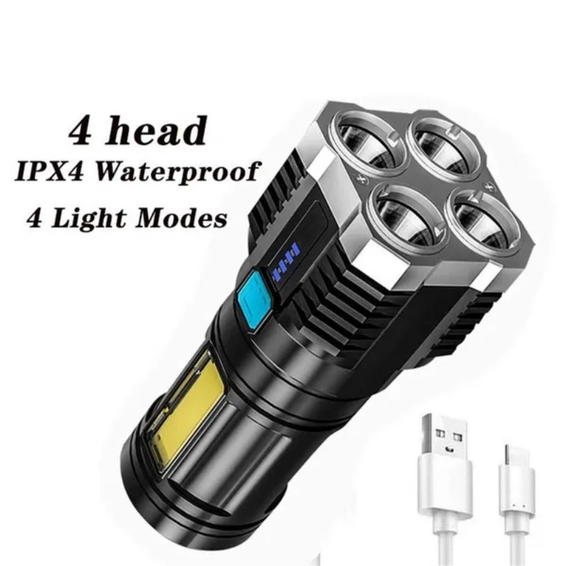 USB Rechargeable 4 Heads Strong Light Flashlight Outdoor Household Portable Long-range Led Flashlight Hiking Camping Flashlight|