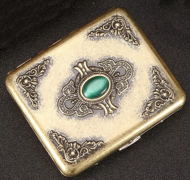 Vintage Relief jade Capacity 20pcs Cigarette Storage Case Pocket Metal Cigarettes Holder Vintage Relief Feather Mens Gifts Boxs