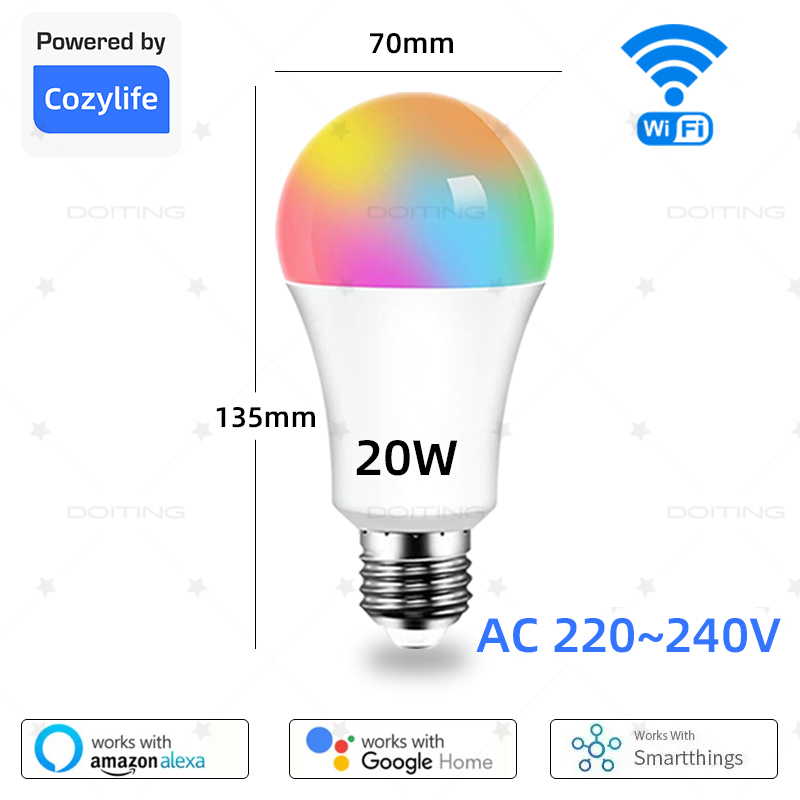 WiFi E27 Smart Dimmable Bulb RGBCW Colorful 220V 15W 20W LED Light App Adjust Dimmable Support Alexa Google Home Voice Control|