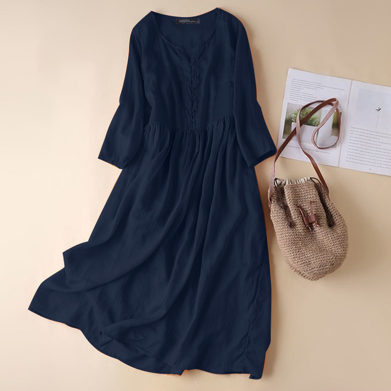 ZANZEA Women White Beach Dress Solid Summer A-line Half Sleeve Shirt Dress Casual Loose Pocket Sundress Holiday Baggy Long Robe|