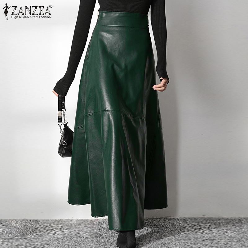 ZANZEA Womens PU Leather Maxi Skirt 2024 Spring Elegant OL Long Saias Fashion Solid Mujer Faldas Casual High Waist Zipper Jupe